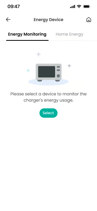 → Step 1: Tap the Select button on the Energy Monitoring screen to move to the Select Device screen.