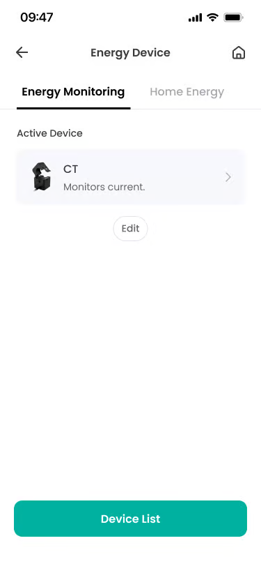 Functionality: You can check the currently active Energy Monitoring Device status and move to the device selection or add screen.